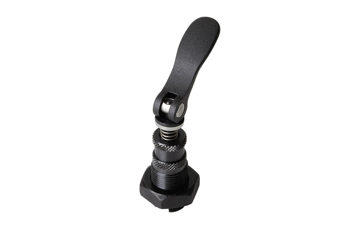 The clamp module is inserted into the T-slot from above and secured using the cam lever, no other tools required.