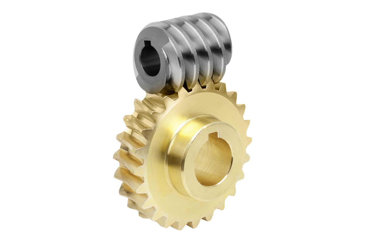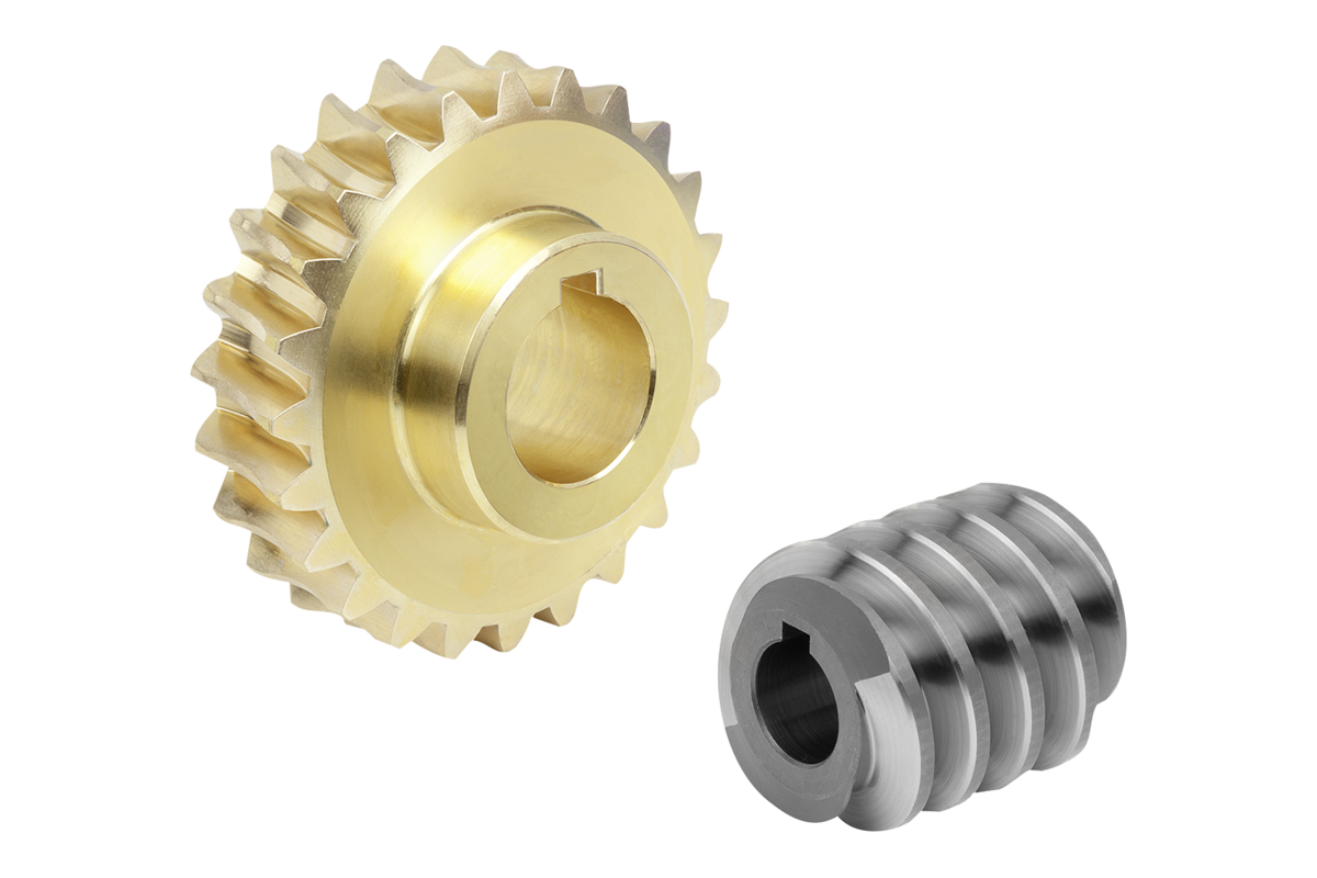 A worm gear set consists of a worm screw and the worm wheel. Suitable for constructing worm gears with an axis angle of 90°. With a worm gear drive, very high slow ratios can be realised with just one stage.