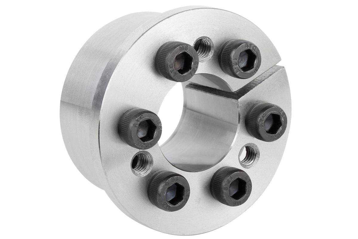 Lightly oil keyless locking coupling on the tapered faces and contact points of the shaft and hub. Do not use MoS2 or grease. Insert keyless locking coupling in the hub seat and slide onto shaft. Tighten screws crosswise in several increments to the defined tightening torque.