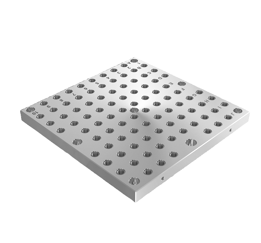 The alphanumerically labelled grid holes mean that the clamping elements can be assigned in a defined manner in the event of repeat setups.