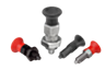 Indexing plungers, steel or stainless steel with plastic mushroom grip and locking slot