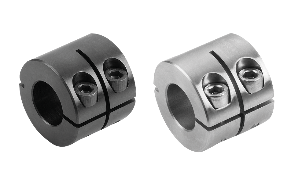 One-piece shaft collars with an outer slit surround the shaft with an equal distribution of the clamping force. This leads to a very precise fit and high retaining force without damaging the shaft.
