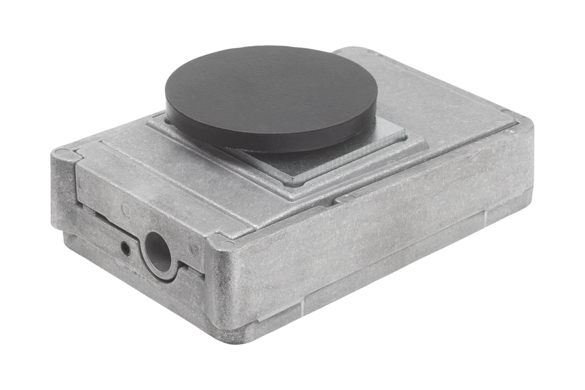 The vulcanised Shore 80 nitrile rubber anti-slip face (1) provides permanent insulation from vibrations, noise, and corrosive media.
