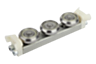 Genom enkel justering av den mittre excenterrullen ställs rullstyrvagnen in spelfritt eller med önskad förspänning i skenan.