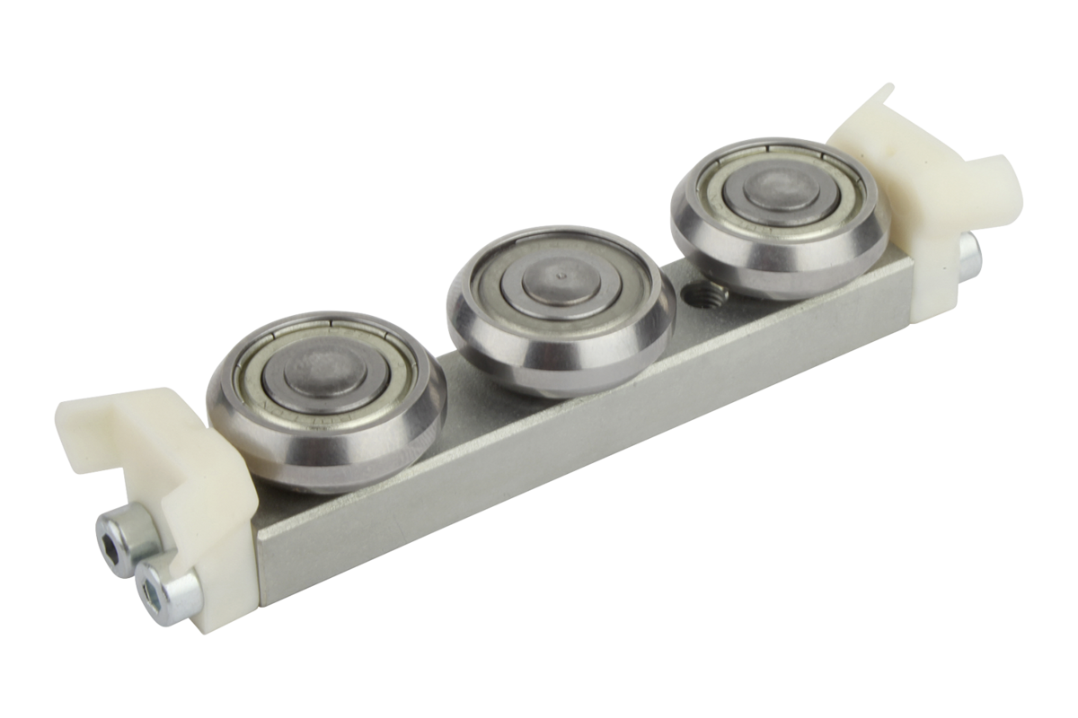 Rullstyrvagn med livstidssmorda rullager och avstrykare i polyamid som skyddar löpbanorna mot smuts.