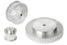 Standard-AT-profil med metrisk delning (trapetsformad kugg). Minst en kuggremskiva måste ha kantskivor. Kuggremskivorna har ett centeringshål eller är förborrade (kan variera beroende på tillverkningstekniken). Därför är måttet D2 max. i tabellen det maximala värdet för hålet som kuggremskivorna levereras med. Kunden kan göra om detta förborrade hål/centreringshål till ett passhål, passhål med spår eller gängat hål. Man kan även minska diametern med bussningar.