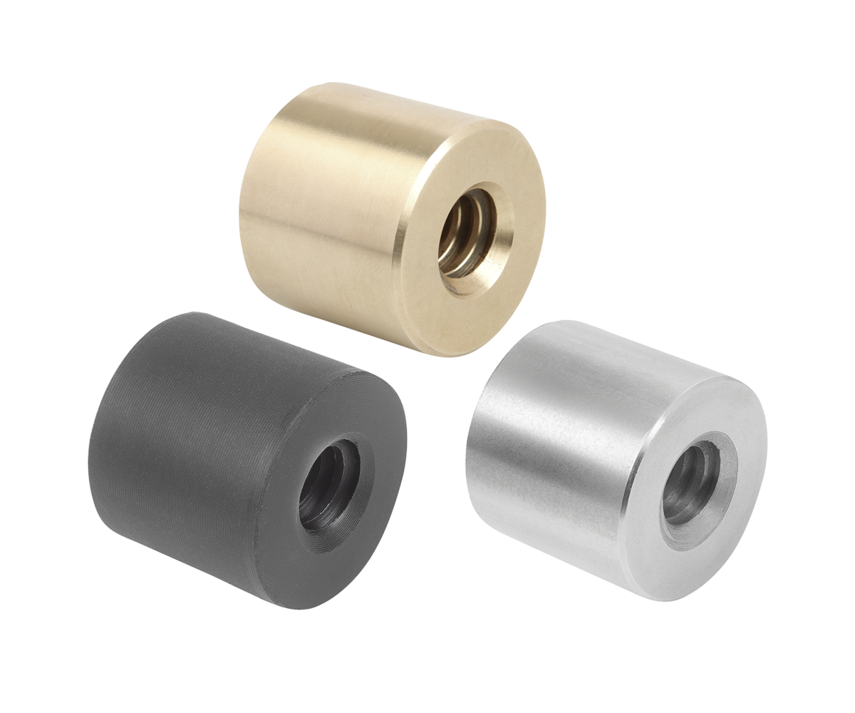Muttrar av stål: för justeringsrörelser vid manuell drift och som fästmuttrar. Bör inte användas i motordrivningar på grund av materialkombinationen stål-stål.