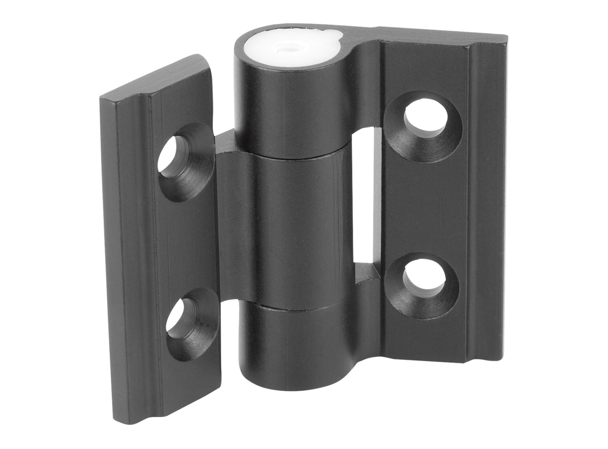Vridmomentsgångjärnen håller dörren i valfri vinkel. Friktionsmotståndet kan ställas in steglöst från 0–1 Nm med en ställskruv.