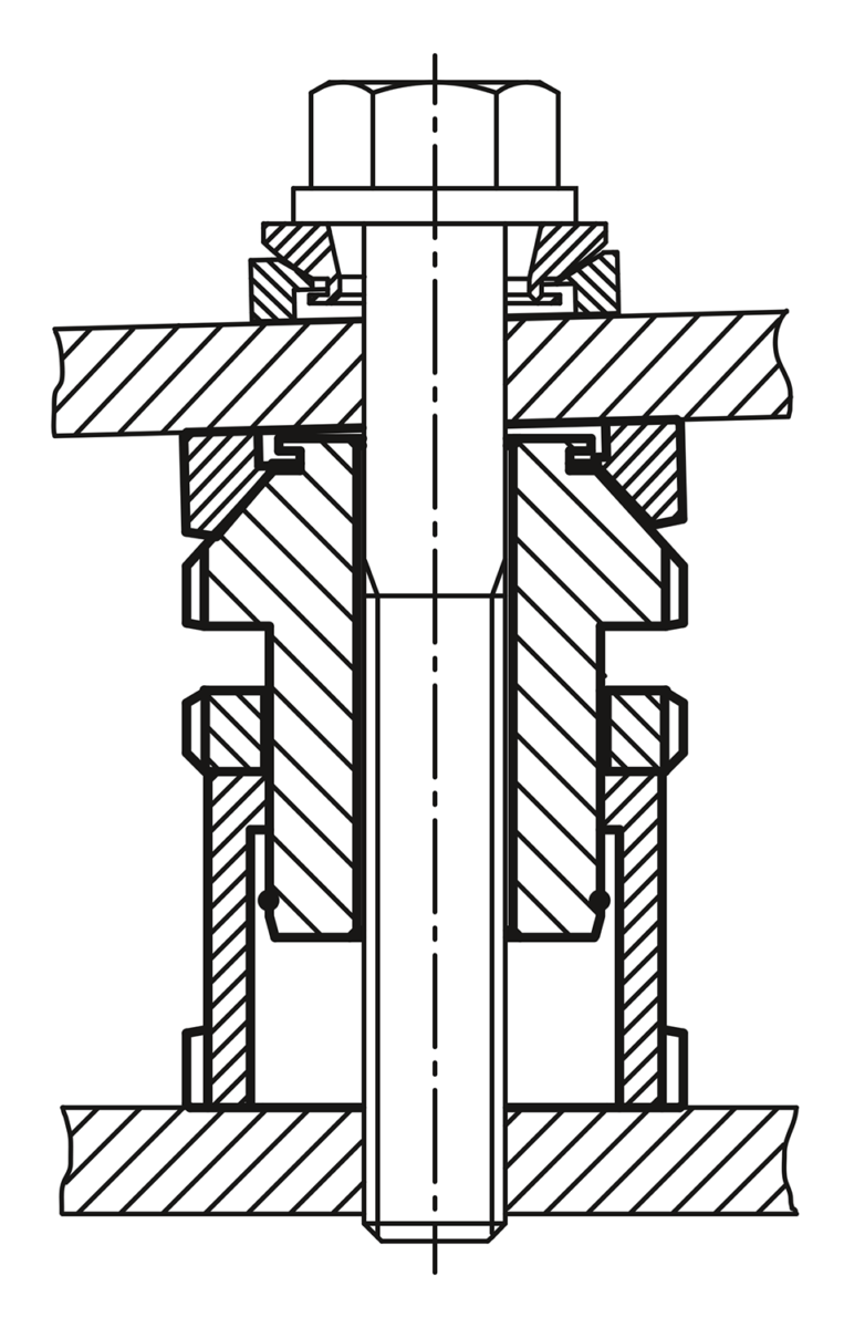 Höjdjusteringselementen med kulmellanlägg och låsmutter används för uppställning och justering av motorer, aggregat, drivenheter och tillverkningslinjer. Med hjälp av dessa kan man uppnå exakt anliggning vid montering på sneda ytor med en lutningsvinkel på upp till ca 4°. Därvid låser låsmuttern en förinställd inställning.