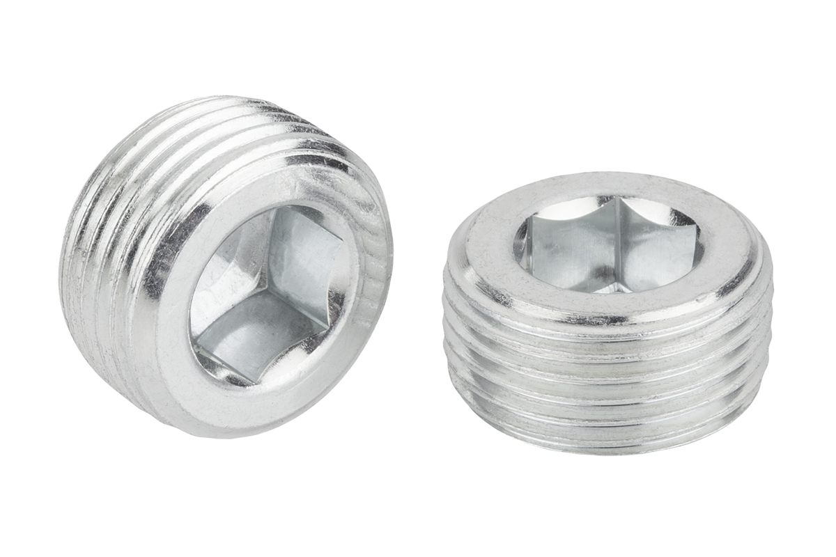 Gängade pluggar med insexkant och konformad gänga är lämpliga för att stänga borrhål med cylindrisk innergänga.