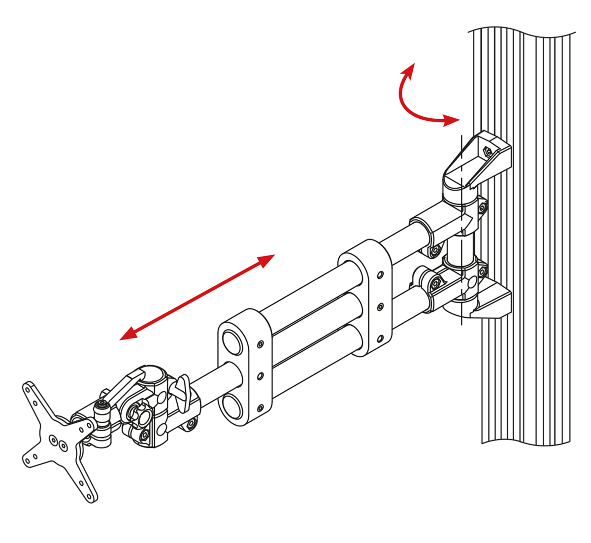 Som tillval för de olika infästningsalternativen finns en väggkonsol, profilkonsol, enkla/dubbla bärarmar, hållare för surfplatta, tangentbordshållare eller en anslutningsplatta VESA 50/75 eller 75/100.