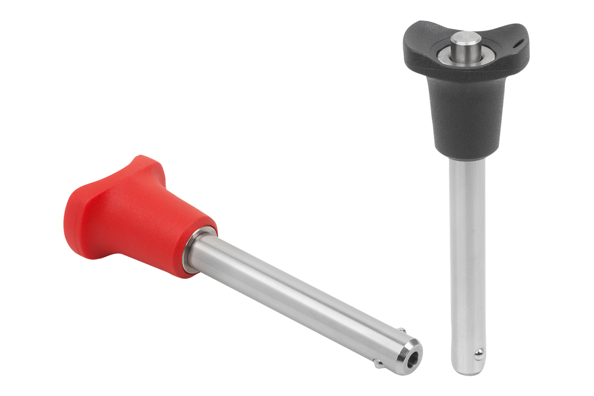 Kulspärrbultarna används till att snabbt och enkelt sätta ihop och fixera delar och arbetsstycken. Genom att trycka på tryckknappen låser man upp de båda kulorna så att delarna som ska anslutas kan kopplas ur. När man släpper tryckknappen låses kulorna automatiskt så att delarna sitter säkert. Kulspärrbultarna kan vid behov förses med en säkerhetsvajer.