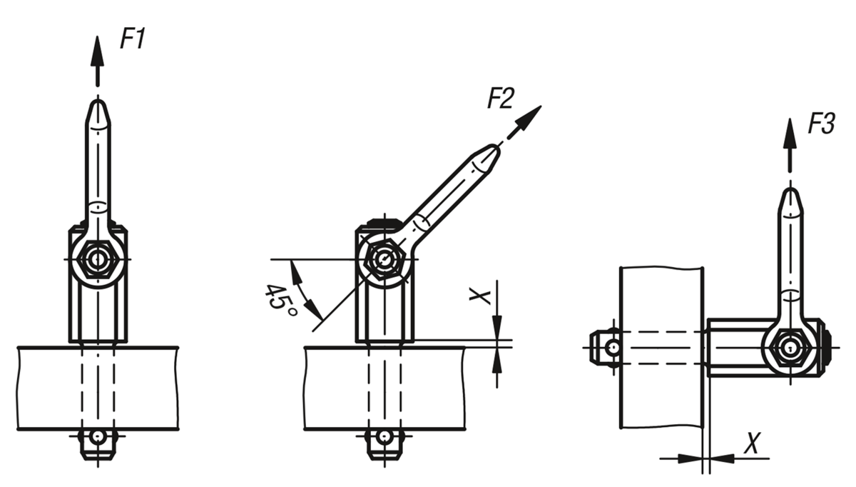 Uppgifterna X min., F1, F2 och F3 har kontrollerats enligt DIN EN 13155 och kontrollbelastningen motsvarar 3 gånger nominell belastning.