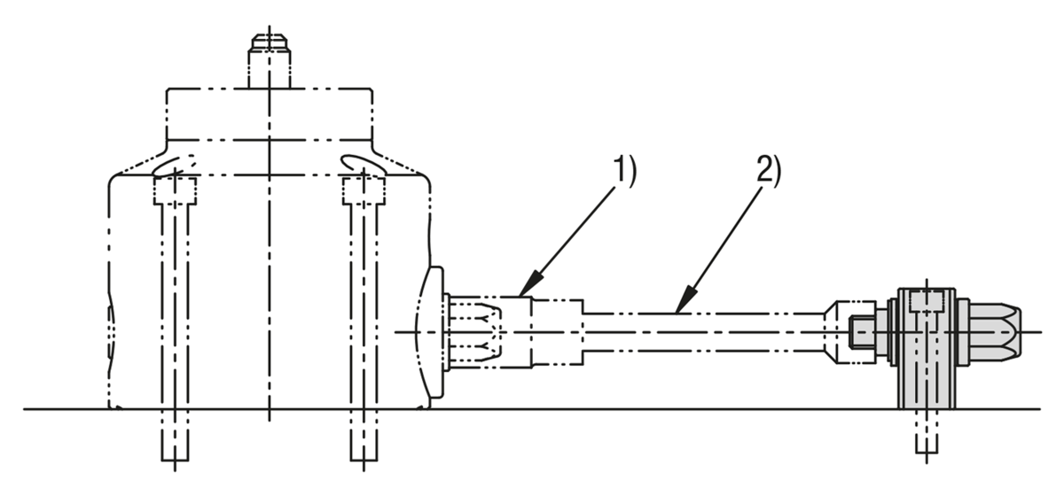 1) Hylsa och 2) drivaxel ingår inte i leveransen.