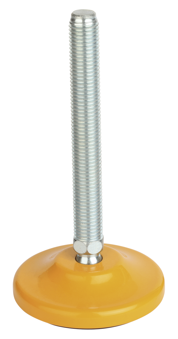 Fotplatta i stål, gullackerat. Gängad spindel i stål, förzinkat.