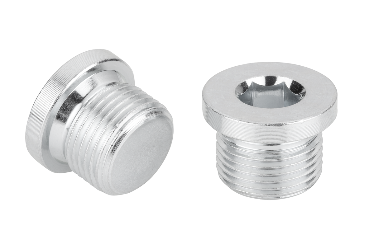 Gängade pluggar med kant och insexkant för att stänga borrhål med cylindrisk innergänga.