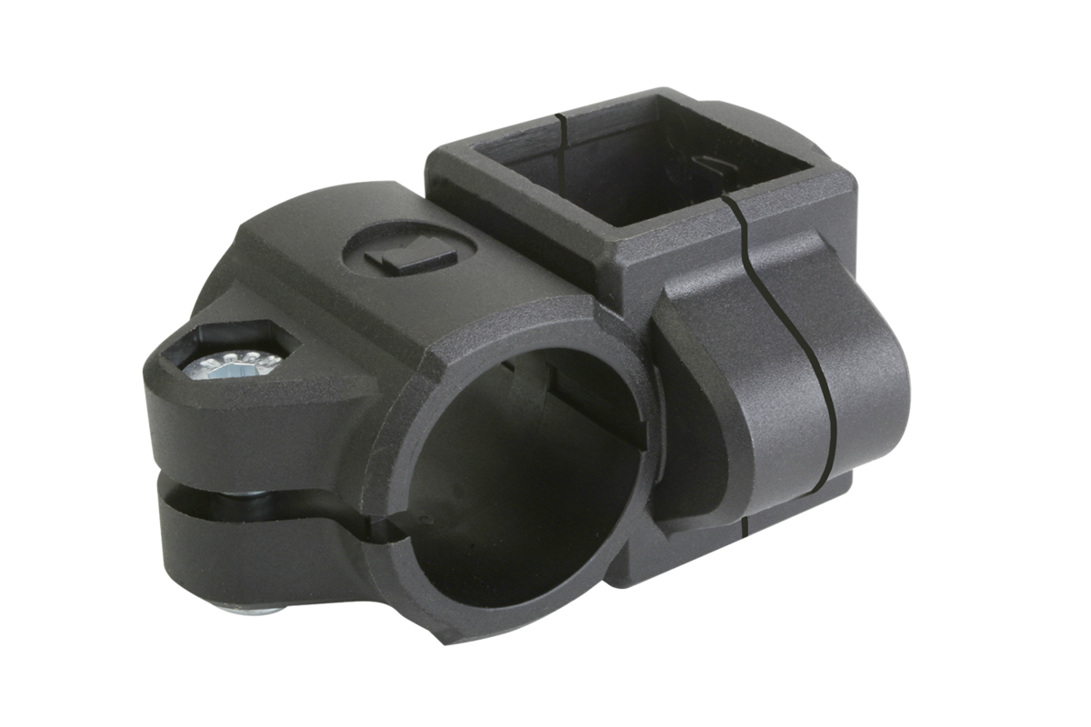 Med rörkopplingen Korskoppling kan fyrkantsrör och runda rör på 30 mm klämmas fast.