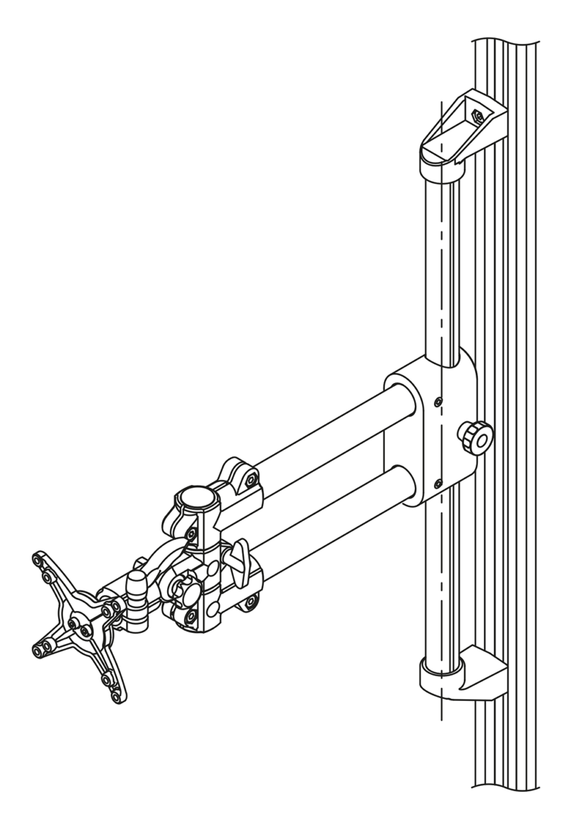 ger ett svängområde på 60°. För belastningar upp till 10 kg (statiskt). Med universalskruvplatta. Hållaren passar för fastsättning på runda rör med Ø30 mm. Via reduceringshylsor 29042, som finns som tillval, kan även andra tvärsnitt användas (runda rör med Ø20 och 25 mm eller fyrkanter 20x20 mm).