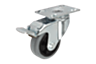 Fastskruvad hjulaxel. Helgummihjulen av standardtyp är stöt- och slagtåliga samt korrosionsbeständiga.